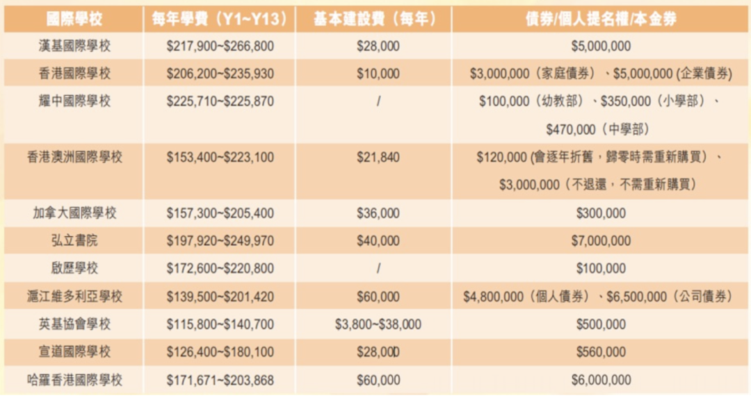 只不過香港的國際學校更復雜一點,不少國際學校屬於私人機構,自負盈虧。因此除了收取學費外,大部分學校還推出提名權、資本建設費、債券等。