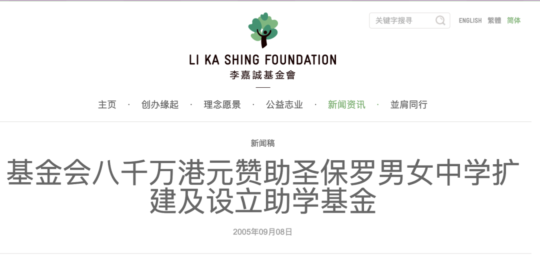 李嘉誠則在2005年捐款8000萬給聖保羅中學,有意讓長孫李長禧入讀。