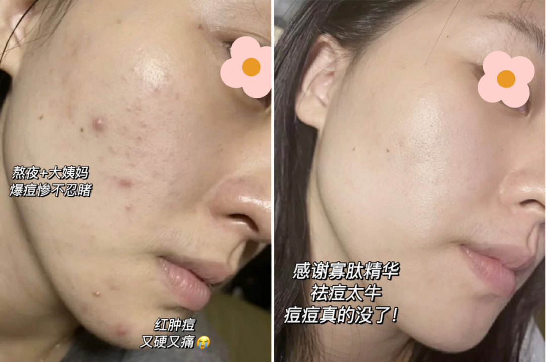 HFP祛痘修護精華,其中加的8.5%高濃度複合肽3,是北大皮膚學博士認可的。