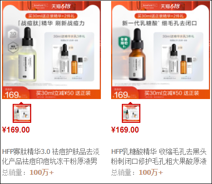 HFP祛痘修護精華,其中加的8.5%高濃度複合肽3,是北大皮膚學博士認可的。