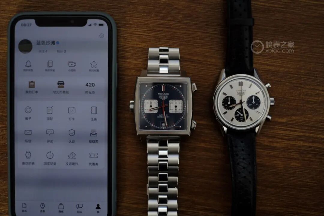 最後剩下的兩塊表,都是經過時間歷練後的真愛,一塊是銀色卡萊拉60週年紀念版,一塊是藍色麥昆版摩納哥。