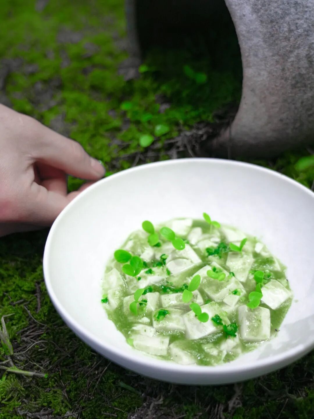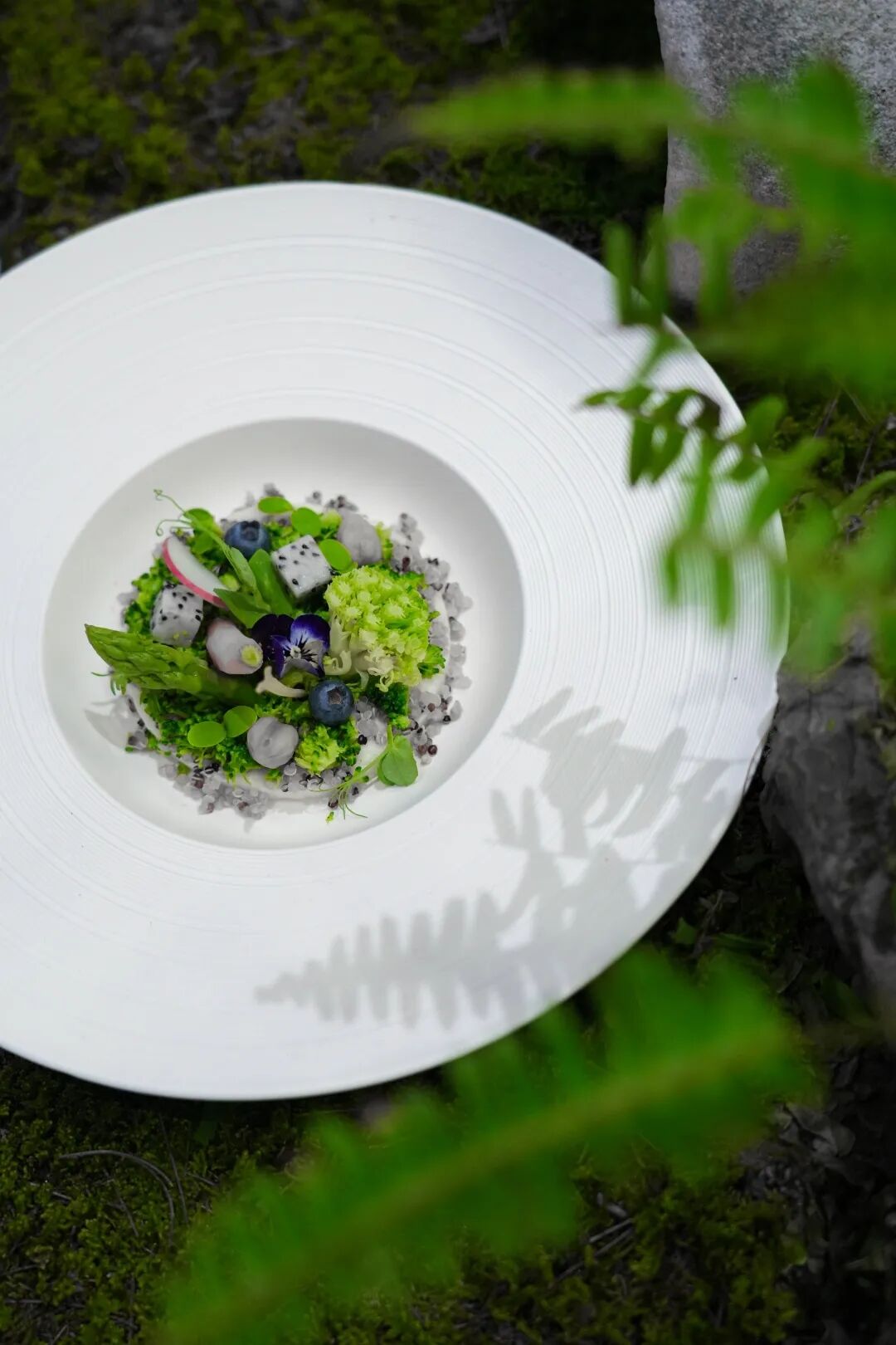 去年 10 月份新成立的杭州餐飲品牌白丁行舍,以簡樸厚重的禪意融合在一派青山綠水中。他們家的菜品一直主打自然、慢食的健康之味道。本季春分,王主廚和自己的團隊花了許多精力在馬蘭頭、香椿、白蘆筍和百合等春菜食上。