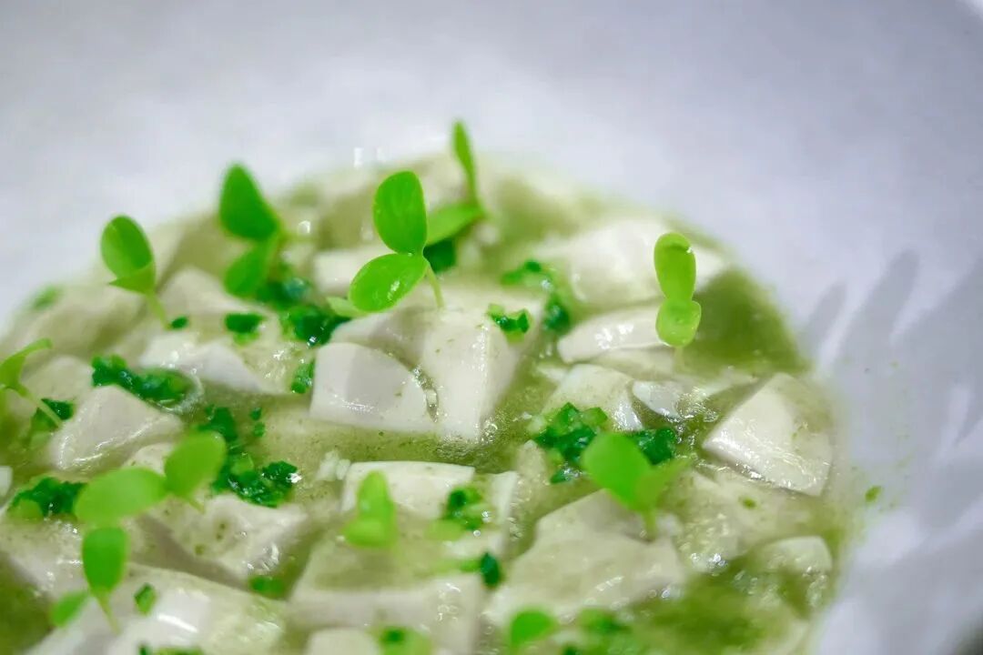 在王主廚看來,這個季節的香椿香氣充足,頭茬的香椿特別鮮嫩,用來炒豆腐、再加上羽衣甘藍別有一番風味。白蘆筍則是應季破土而出,它是大地孕育出的珍蔬,色呈白玉,耀眼好看又極具營養價值,具有一定排毒抗衰老的功效,堪稱蔬菜之王。而馬蘭頭是杭州當地蕭山地區村民們常愛在這個季節食用的時令蔬菜,用來包包子風味極佳。