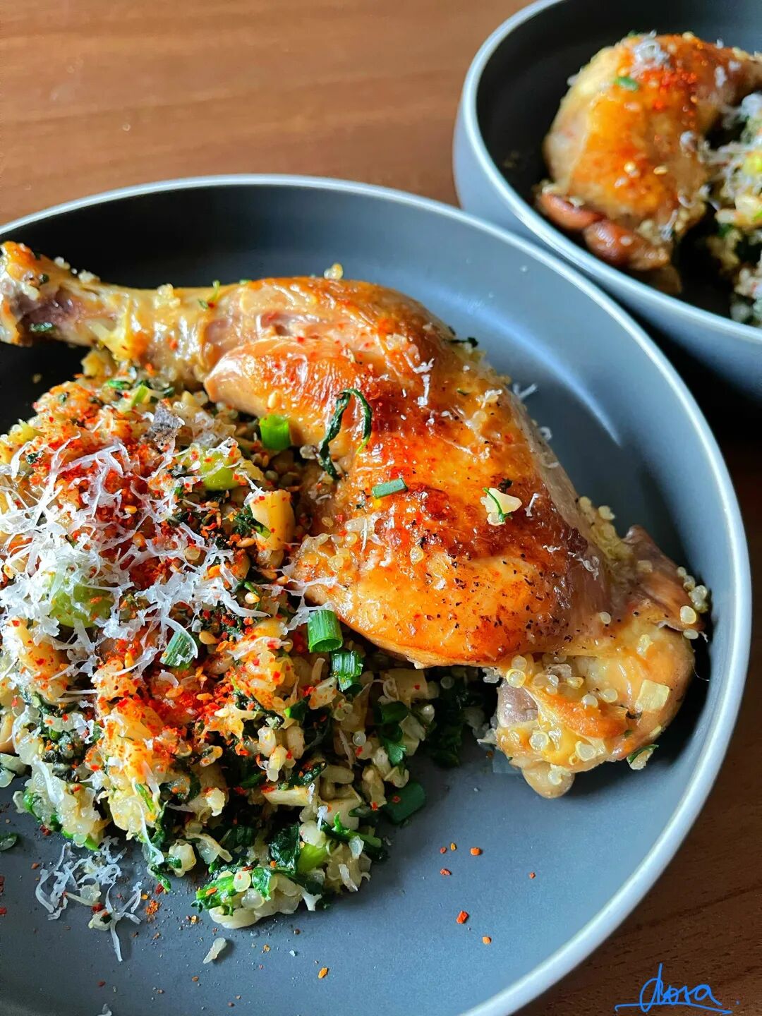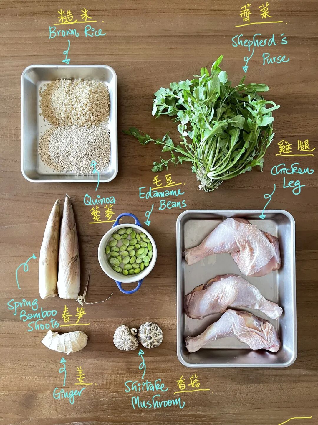 “想向大家推薦‘一鍋出’薺菜春筍毛豆香菇雞腿藜麥燜飯!春光明媚,做了一鍋燜飯把整個春天都收入盤中。春天的味道少不了薺菜和春筍,我這個藜麥燜飯就集合了我喜愛的春天的味道,另加了雞腿和香菇的香氣,春回大地的氣息,非常鮮美。這道菜集合了蛋白質,優質澱粉及蔬菜於一鍋,適合一家大小,極力推薦。”