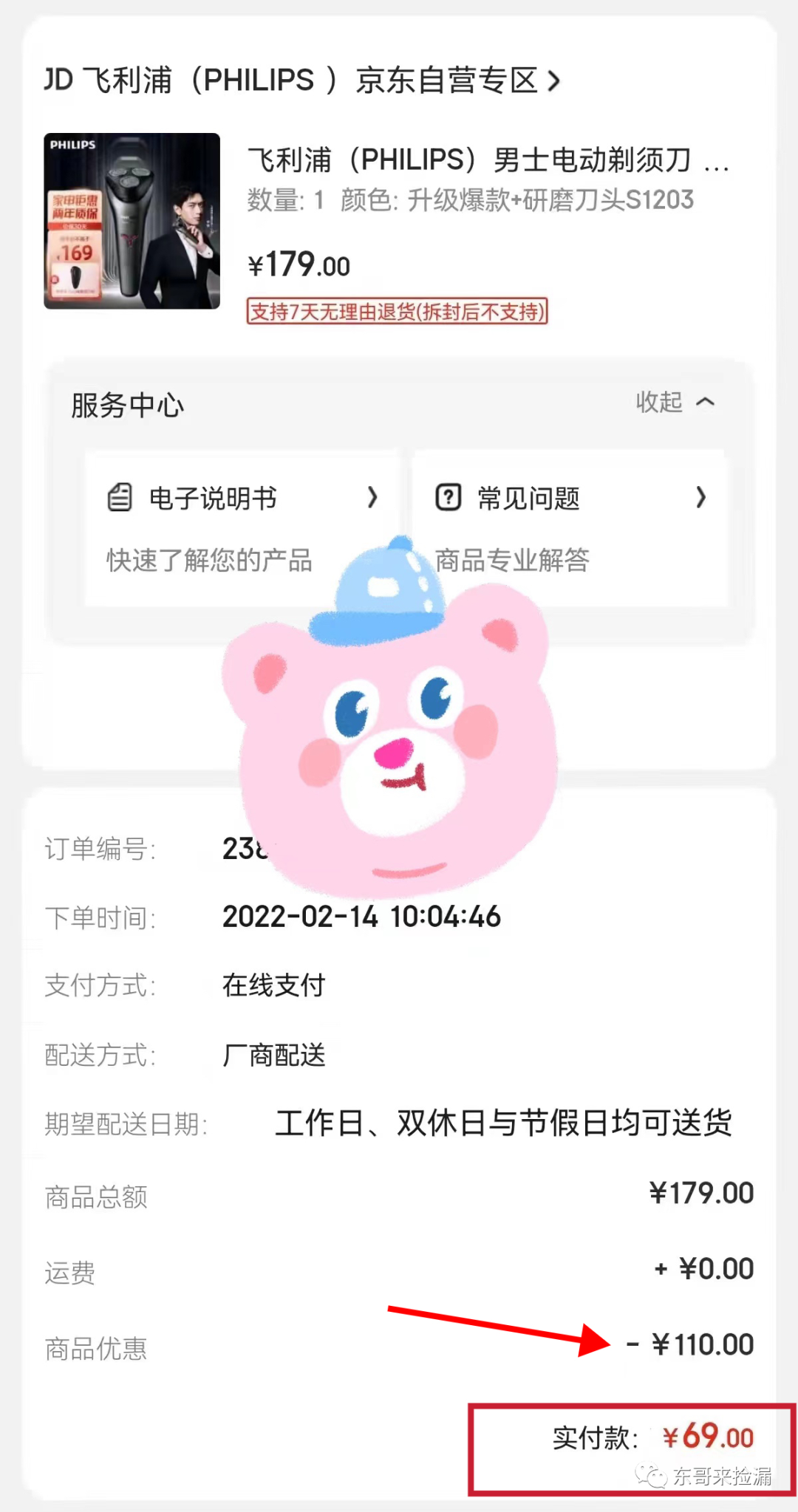還有買給老公的剃鬚刀,每次看他都用刀片刮,總是把自己刮傷,立即就去群裡搜電動剃鬚刀的優惠,結果還真有,關鍵是還很便宜~