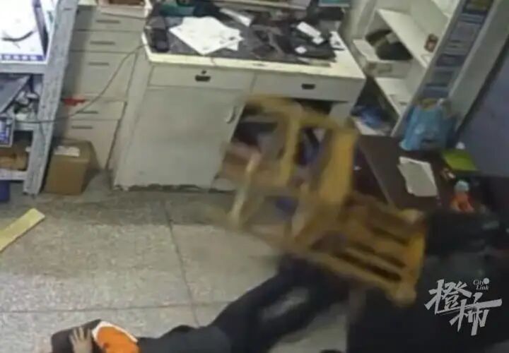 3月20日,湖南有網友上傳視頻,在一家快遞點,一名身穿快遞工作服的女子,被一男子掄起椅子砸倒在地。