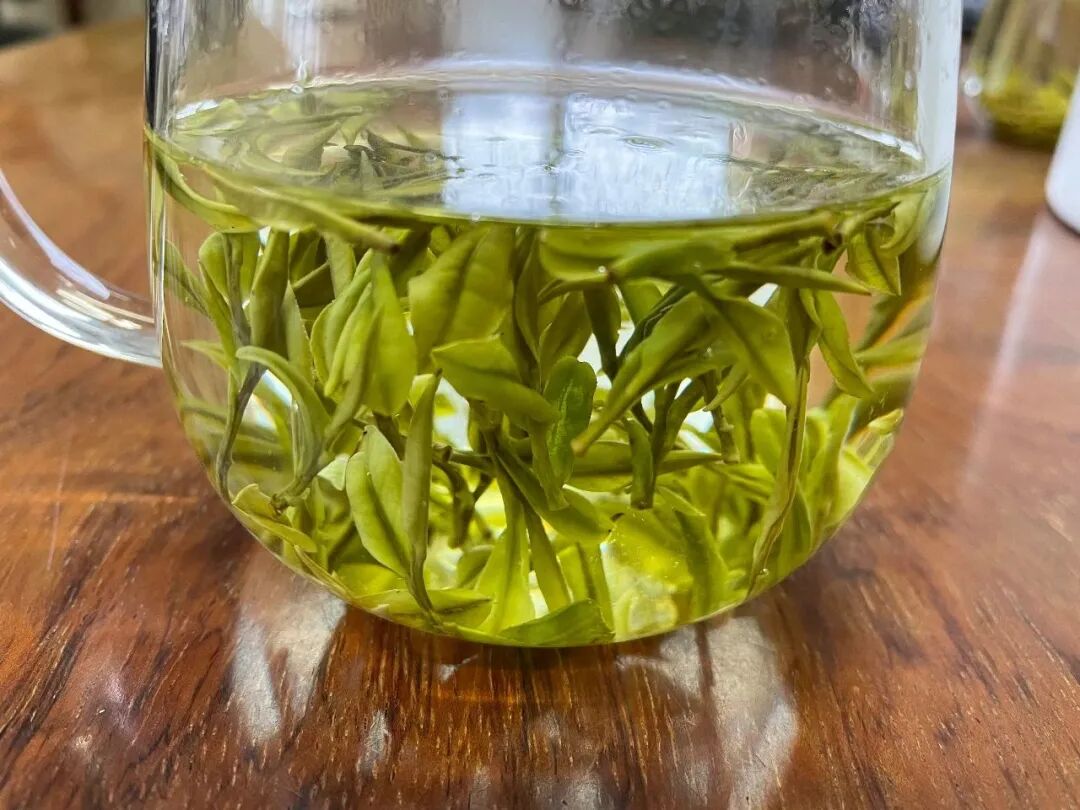 今年的新茶,香氣惹人,顏色鮮綠爽翠