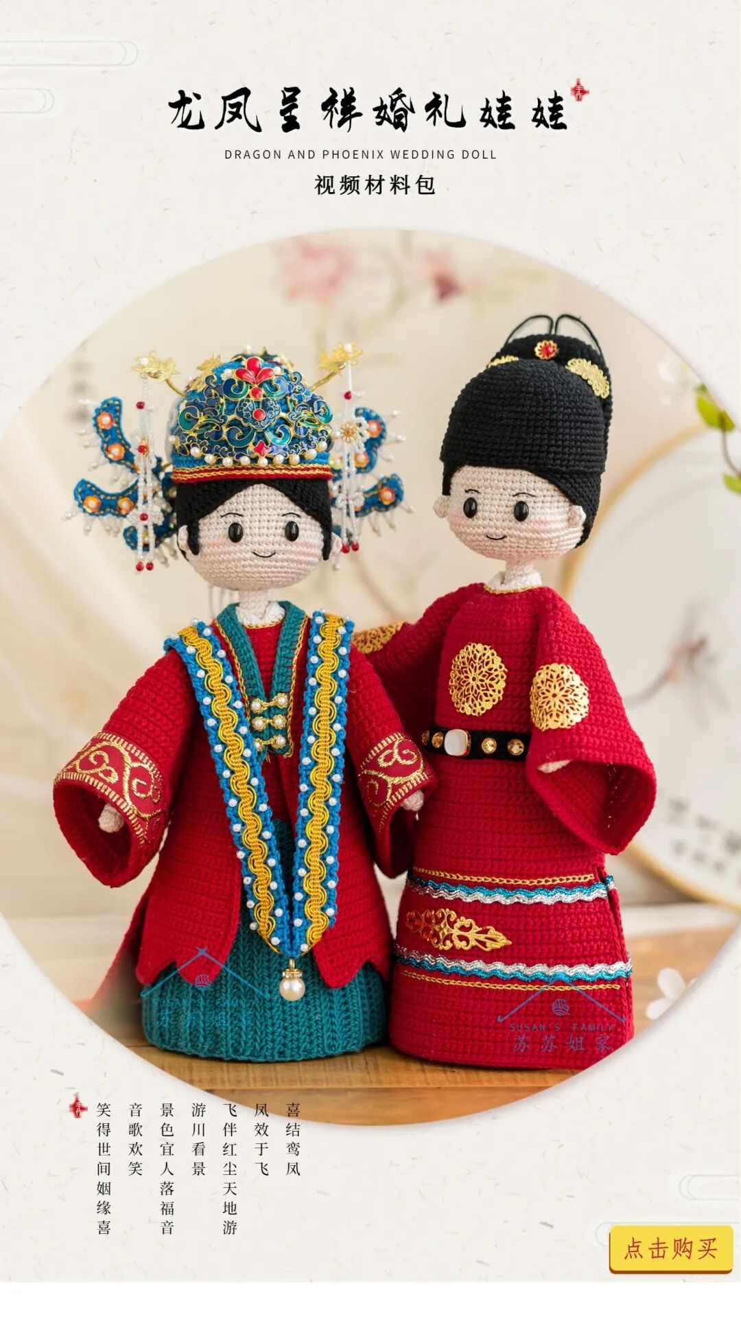 《國風》系列-龍鳳呈祥婚禮娃娃_材料包已在淘寶店鋪【蘇蘇姐家】上架,購買請在淘寶搜索店鋪名“蘇蘇姐家,或複製淘鏈接獲取:https://m.tb.cn/h.UqMOj77?tk=TCyZdQQPbnV