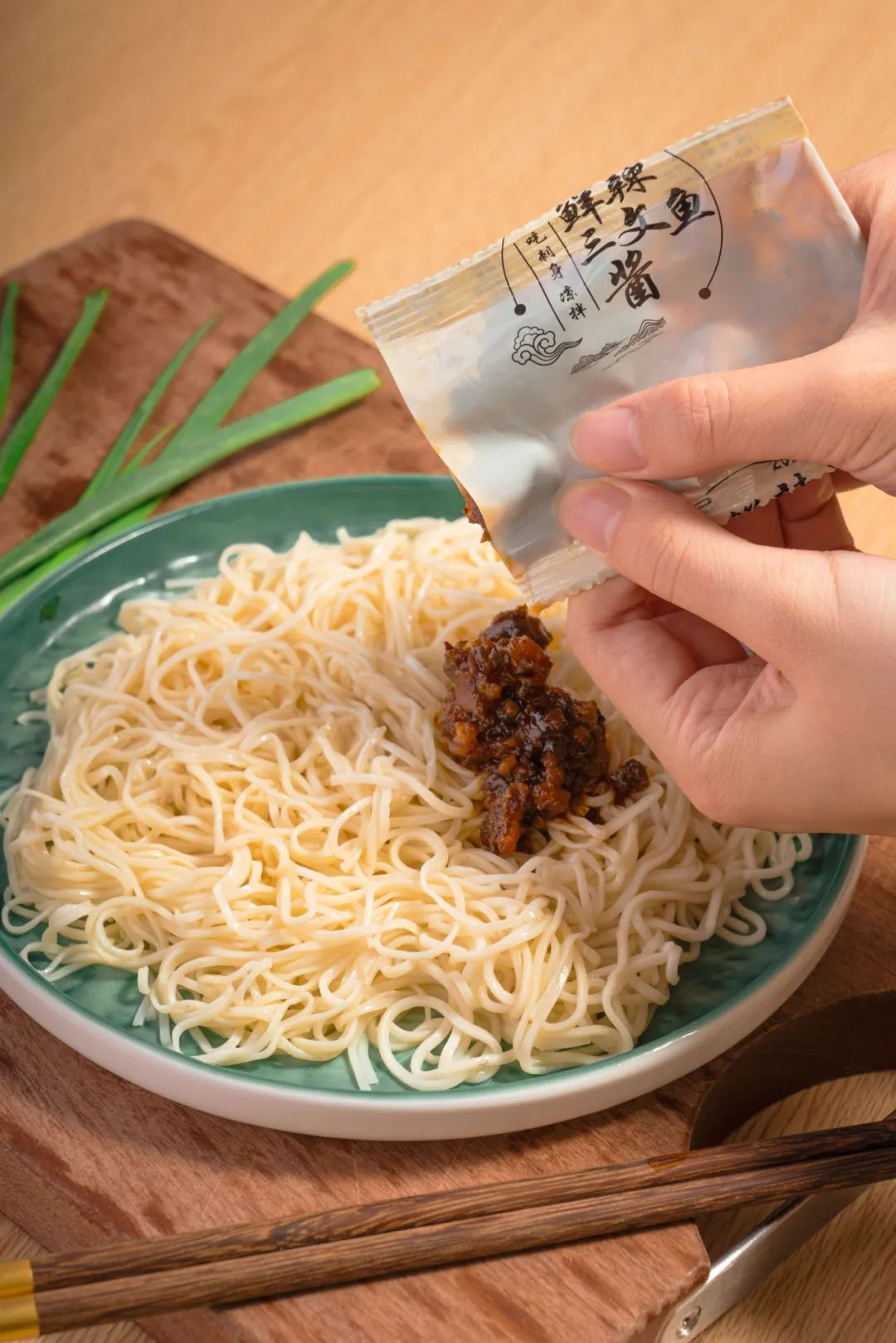 採用“宋嫂拆魚羹”的古法制作,傳統工藝製作出來的三文魚醬,保留鮮辣風味,拌魚面吃簡直是鮮上加鮮;