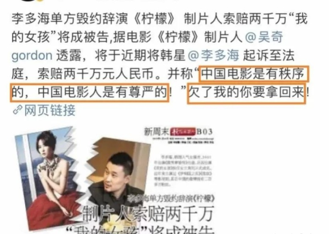 有了第一次,就有第二次第三次,後來她又陸續辭演《咖啡》《檸檬》,被製片人起訴到法院要求索賠兩千萬,