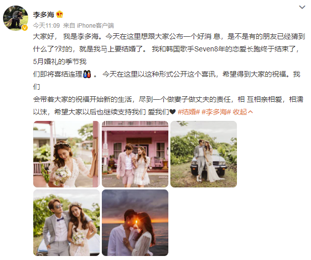 內娛風平浪靜到有些無聊,倒是韓娛那邊,最近傳來了新的喜訊——演員李多海官宣結婚了。