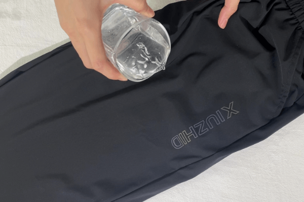 而它液體在碰到面料時就形成水珠,我們稱它為“像雨傘一樣”的褲子!