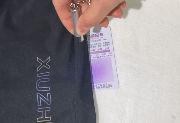 我們也用紫外線直接照射,蓋了褲子的那邊完全沒變色,無遮蓋那邊已經是深紫色。