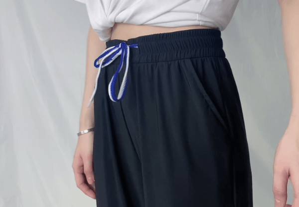 褲腳鬆緊+抽繩時尚感很足,同時露出腳踝,也能讓小個子穿顯高挑~