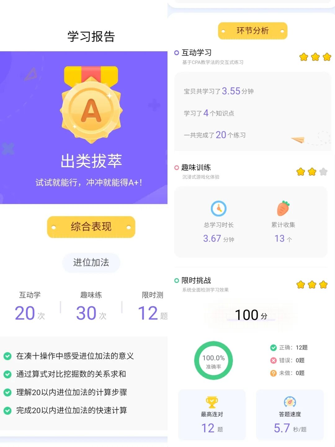 (4)學習報告:最後形成這節知識點的詳細學習報告,讓家長清楚孩子的掌握情況。