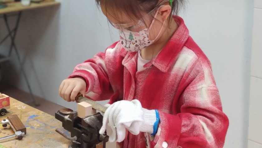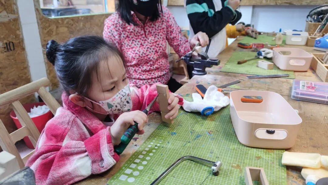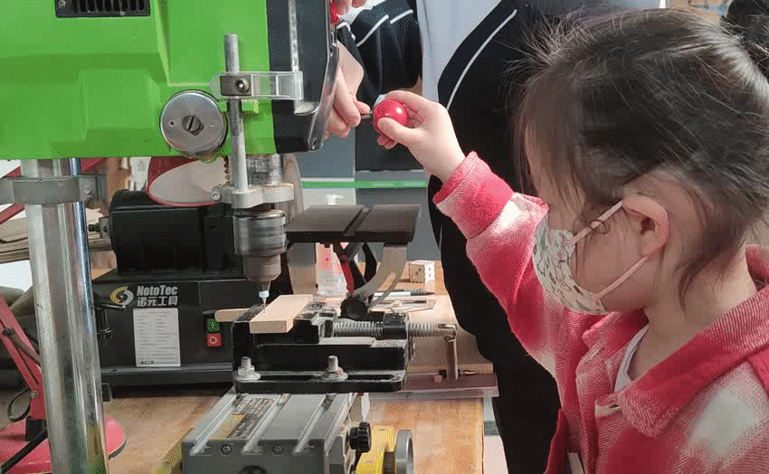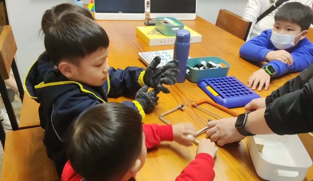 孩子們最喜歡自己動手,踴躍上來體驗,老師手把手指導每一個孩子體驗工具的使用。