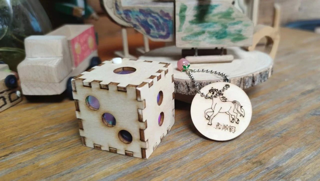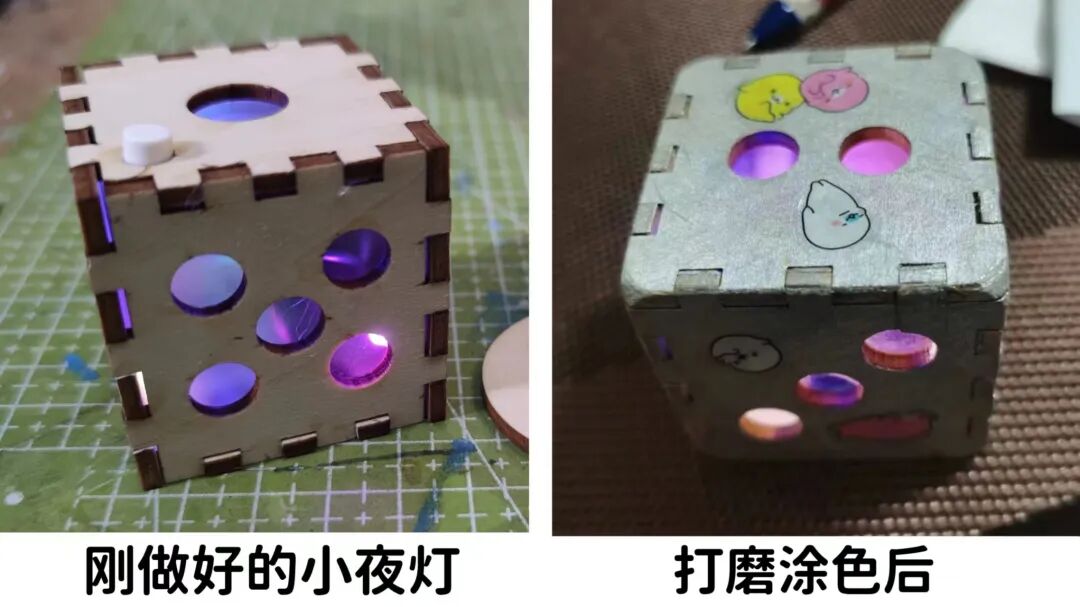 ▲你能相信這是小朋友自己細細打磨塗色的骰子小夜燈嗎?這做舊效果也太棒了!