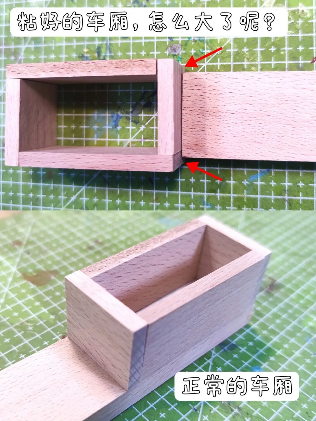 一位小朋友發現粘好的車廂超出了底盤的大小,別人的怎麼都正常,這是為什麼呢?