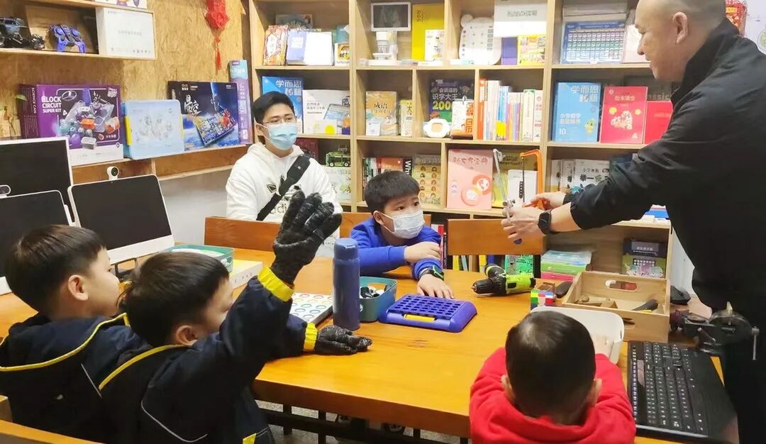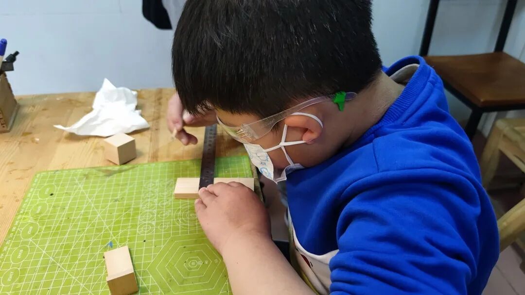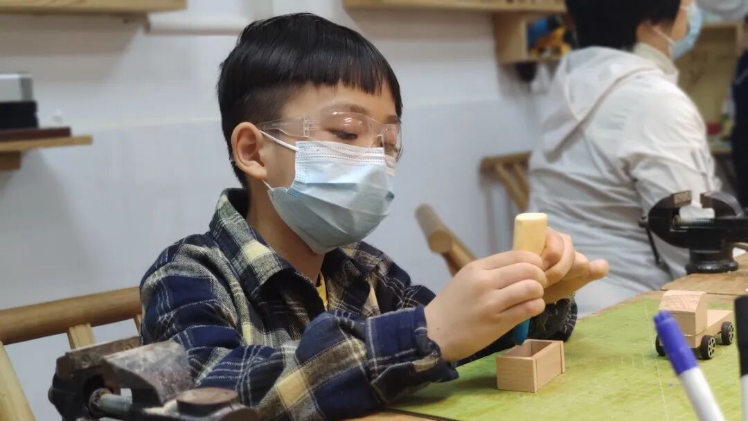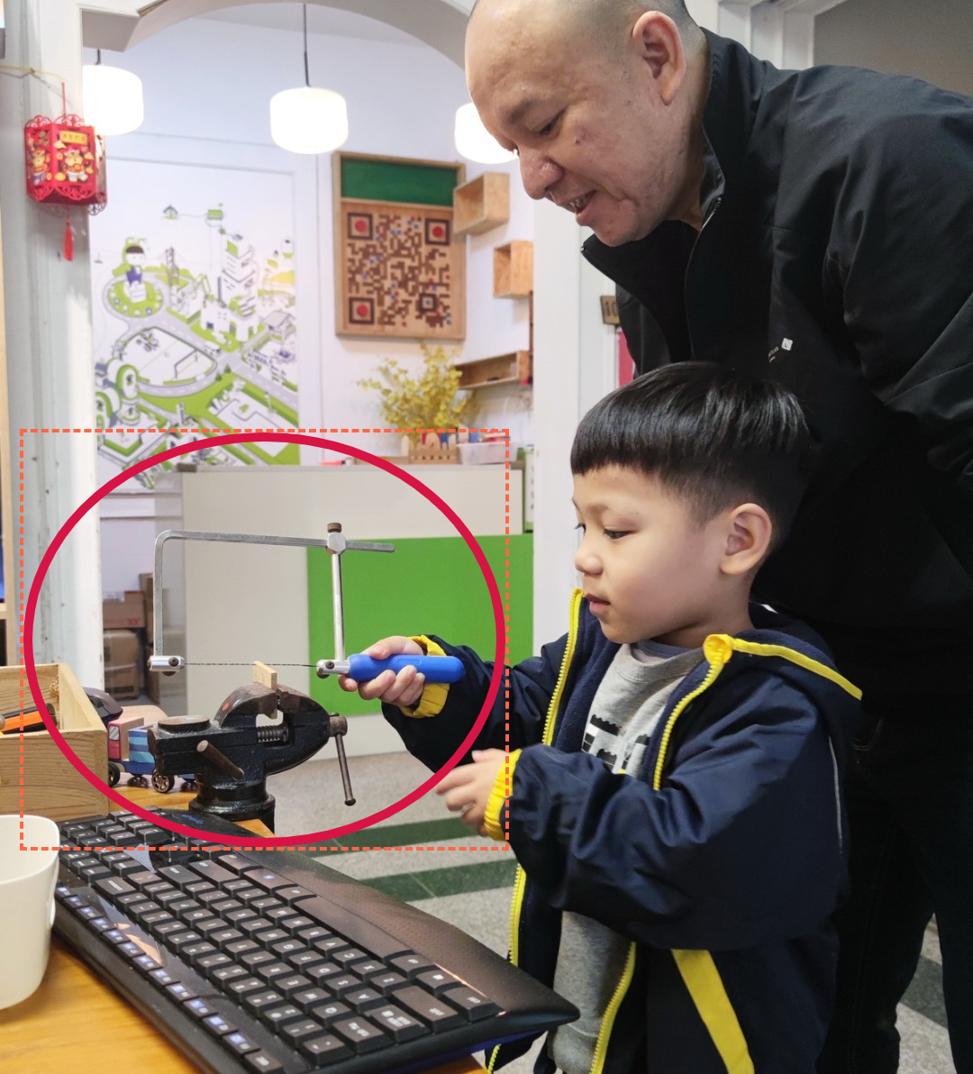 特別欣賞今天來的一位爸爸,一直抄著手看孩子做,不插手、不干預,小哥哥雖然第一次做,但思維活躍、動手能力特別強