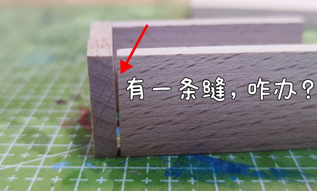 另一個小朋友發現:兩塊木板長度有一點誤差,拼起來有一條縫,無法粘合,怎麼辦?
