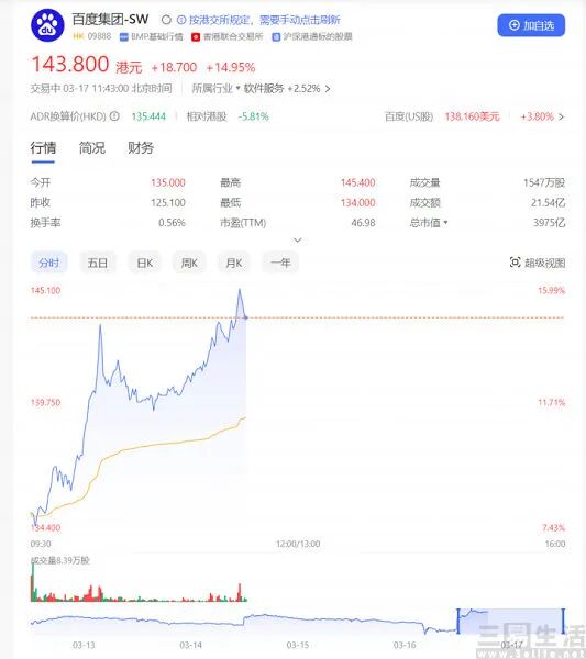 看起來,文心一言似乎是翻車了。然而就在這場發佈會的第二天,百度的股價大幅上漲15%。