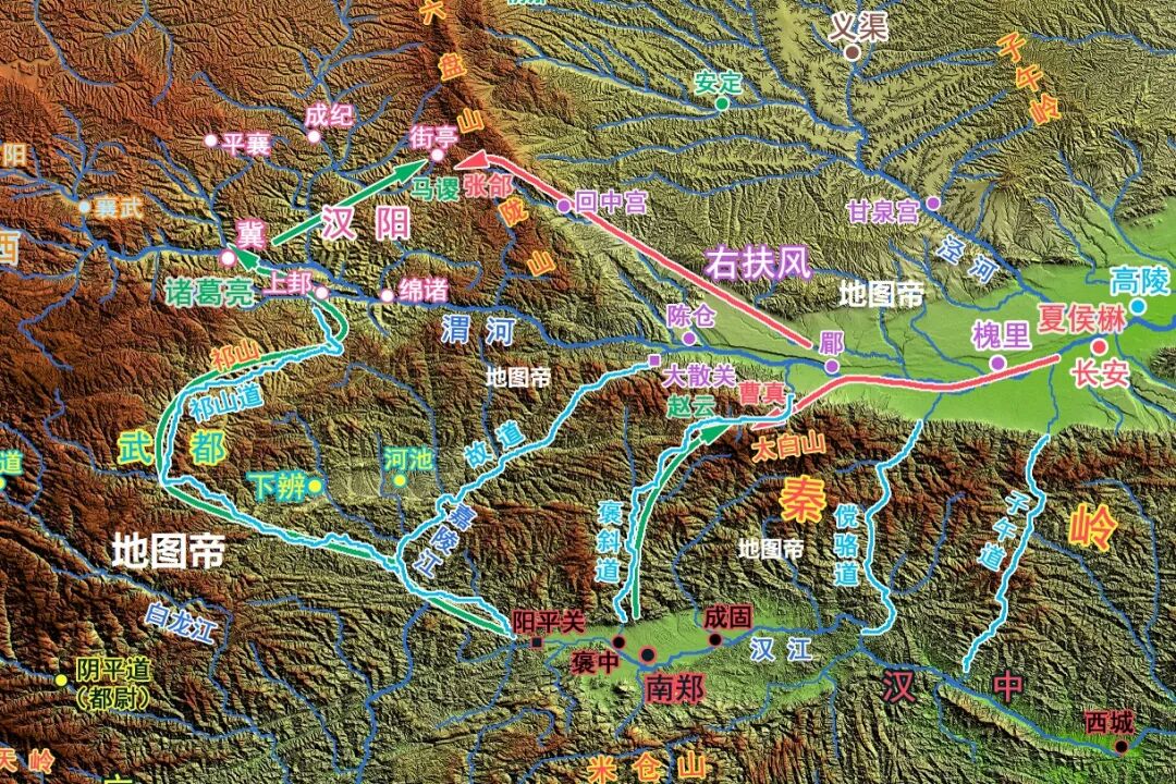 漢獻帝建安二十二年(公元217年),劉備和曹操爆發了漢中之戰。苦戰兩年多,劉備雖然拿下了漢中,但曹操已經將漢中人口悉數遷走,留給劉備一座空城。空城對劉備來說也非常重要,位於秦嶺以南、米倉山以北的漢中是蜀中咽喉要塞,守住漢中就能守住成都。問題在於,漢中需要駐紮大量軍隊,沒有人口就沒有糧食供應,四川盆地倒是糧食豐富,運輸卻是個問題。從蜀中到漢中的糧道還好辦,走金牛道或米倉道都能到漢中。但從漢中北伐關中,問題就大了。