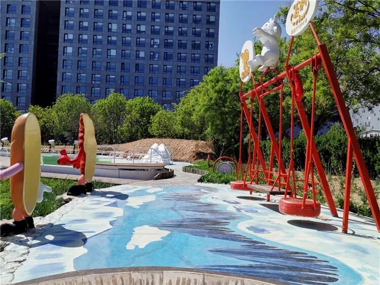 大白熊不知道大家有沒有聽說過,雖然我們今天不能撿到真實的大白熊,可是我們有可愛的大白熊玩偶哦,看,是不是一樣的可愛呢?兒童遊樂園,保證小朋友們可以在這裡盡情遊戲。彩色的噴繪、充滿童趣的設計,裡面有最具特色的鞦韆和可愛的大白熊滑梯,都能讓你停下腳步想去感受一番,怎麼樣?大朋友小朋友們是不是已經有了來遊玩的衝動呢~
