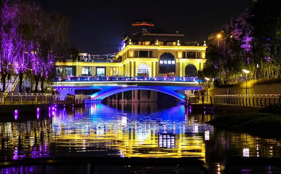 在溫暖的春風裡,帶上三五好友一起乘坐亮馬河的遊船。我們可以看到沿岸的夜景,在光影橋體上,在優雅音樂中。在遊船的40分鐘裡,將異國風情美景與現代科技盡收眼底