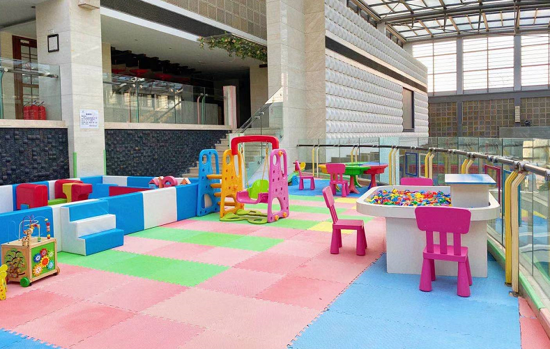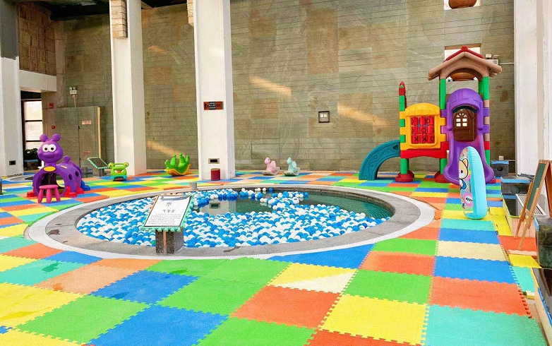 溫泉二層另設兒童娛樂區,桌遊、木馬