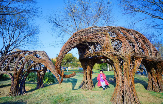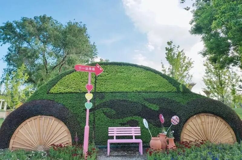 這裡還有環保的北京市地景藝術節,連續舉辦三屆,作品展出,是以園林廢棄材料為主素材,經過藝術 創作在設計師的手中變成了一個個栩栩如生的作品,