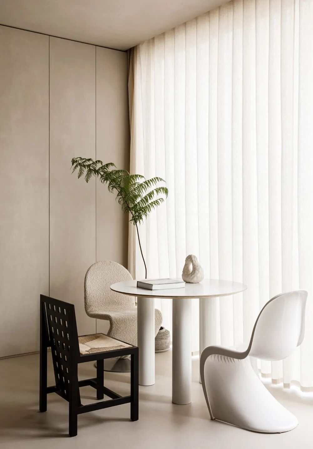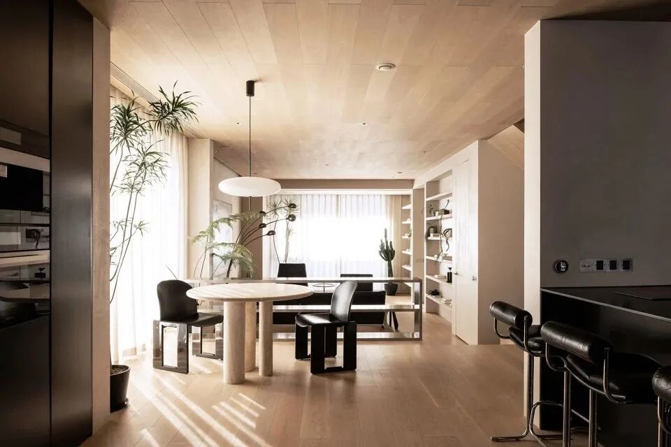 簡約式家居的設計是一個控制分寸的過程。於劉暢而言,這類風格有一點類似他最鍾愛的白T牛仔褲穿搭,簡單、舒適卻又足夠經典。劉暢所理解的設計可以是點與面、光與影、固體與空隙之間的對話、是對素材本身單純美感的追求;也可以是一種“豐富”的簡潔和雅緻。他在此過程中不會添加一絲多餘元素,但也不會刻意地為了“簡”而“減”。
