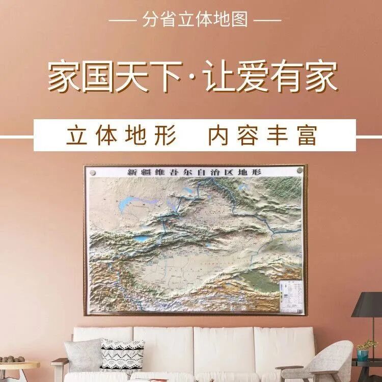 這套各省的《3D凹凸地圖》掛圖,目前只推出了北京、新疆,特點是凹凸地形,防水,用手觸摸有沙盤一樣的質感,加深對地形的理解。