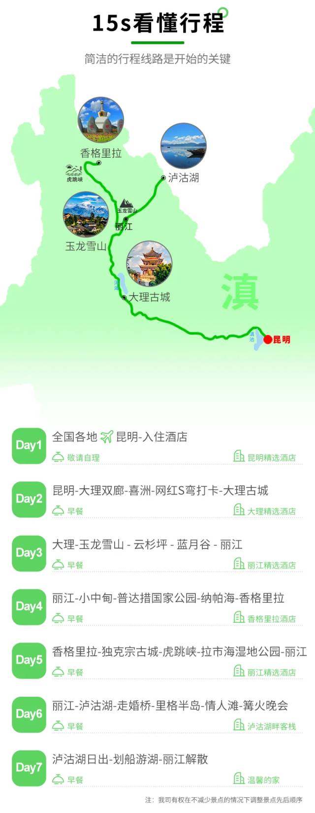 2、門票:行程內門票費:(大理古城、喜洲古鎮、麗江古城維費、玉龍雪山+藍月谷門票、雲杉坪索道、索道環保車、虎跳峽、普達措國家森林公園+景區環保車或石卡雪山往返索道、瀘沽湖門票、瀘沽湖劃豬糟船遊湖、摩梭篝火晚會、拉市海公園門票);