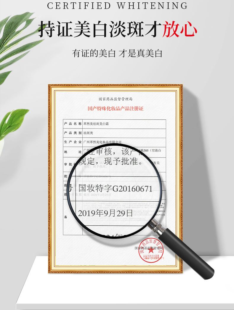 這款祛斑美白霜的祛斑功效是獲得國妝特字認定,持證上崗的溫和祛斑產品。