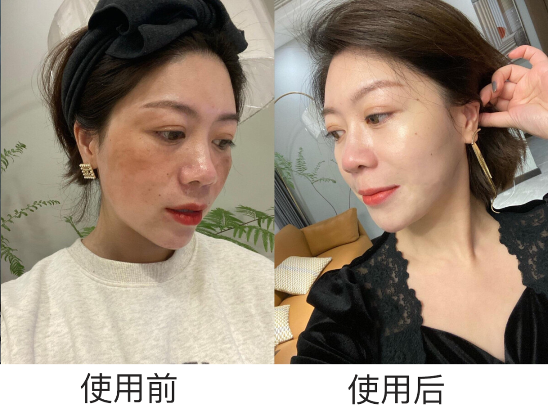 堅持使用一段時間後,肌膚明顯變得透白有光澤。