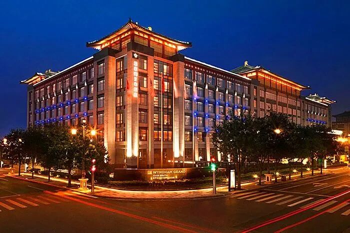 在整個曲江眾多仿唐風格建築的簇擁下,溫德姆將現代建築藝術與中國傳統建築文化有機結合,既不侷限於周圍樓宇宮牆亭閣似的莊嚴華麗,又保持了和大唐不夜城整體元素的相得益彰。