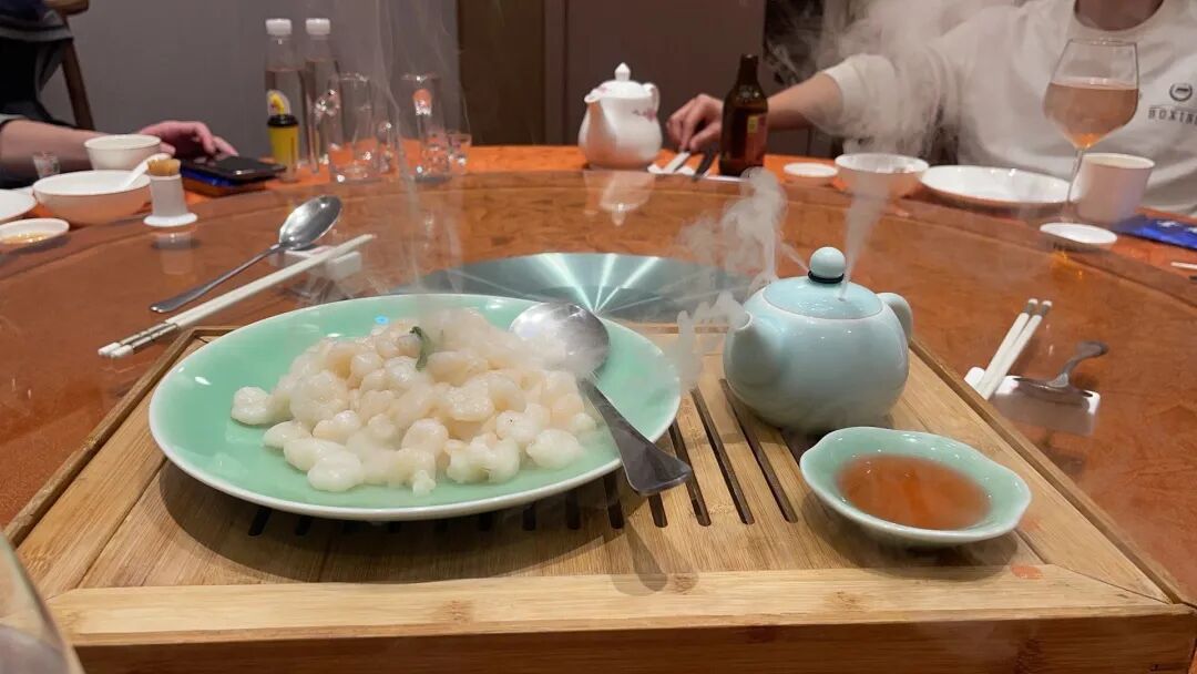 前陣子,橙友“錢塘縣非知名幫閒”曬出了一道杭州特色美食——龍井蝦仁。不過當時西湖龍井新茶還沒上市,一碗玉白的蝦仁上面只有一片孤零零的新鮮茶葉,聽說是每天新鮮採摘後含水放在袋子裡配送過來的。