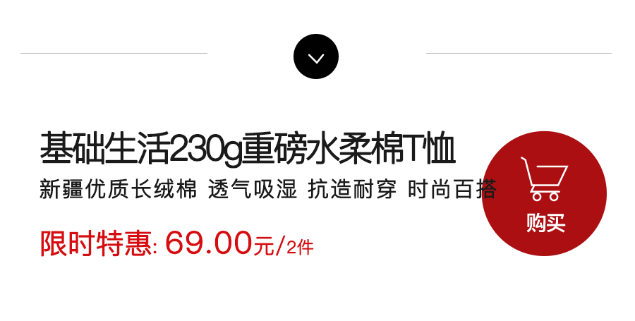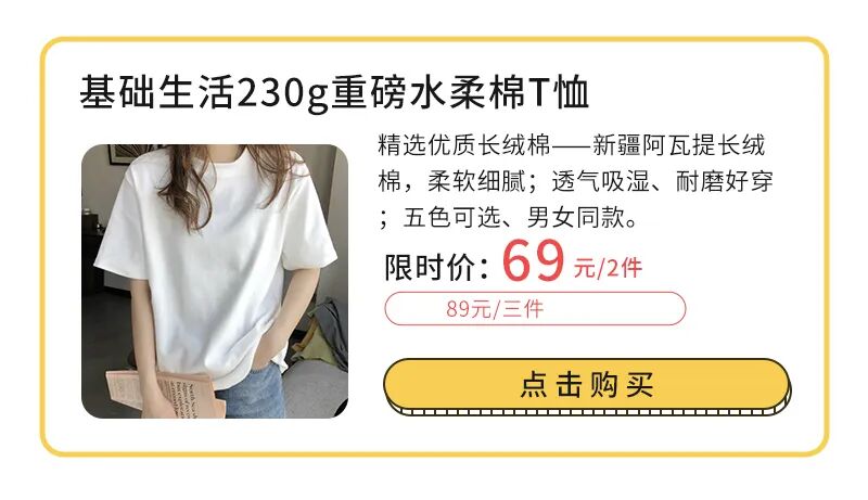 1、基礎生活230g重磅水柔棉T恤,精選優質長絨棉——新疆阿瓦提長絨棉,柔軟細膩;