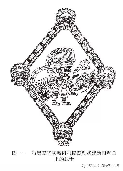 因為此圖案與戰神和戰爭的密切聯繫,也成為特奧提華坎武士的標誌。城內阿提提勒寇(Atetelco)建築內壁畫上的武士就以此為冠飾,面戴模仿風暴神環眼的圓環眼罩,左手持穿透滴血人心的黑曜石彎刀,右手按住挎在腰間的短標槍(圖六)。