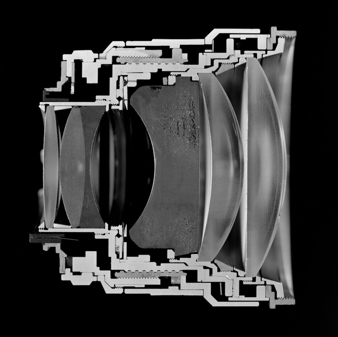 在克里斯托弗·威廉姆斯最近的系列“工業社會的十八課”(Eighteen Lectures on Industrial Society)中,“攝影”成為主題。在該系列中,觀者可以看到相機、攝影設備,甚至標誌性的柯達紅與黃呈現於畫面中心,或作為創作線索。譬如在一組攝影中,他將蔡司鏡頭縱向切割了,暴露在觀者面前的是層疊鑲嵌、複雜壯觀的機械零件。藝術家對圖像的探索從拍攝物開始,鏡頭的內部結構得以顯現。
