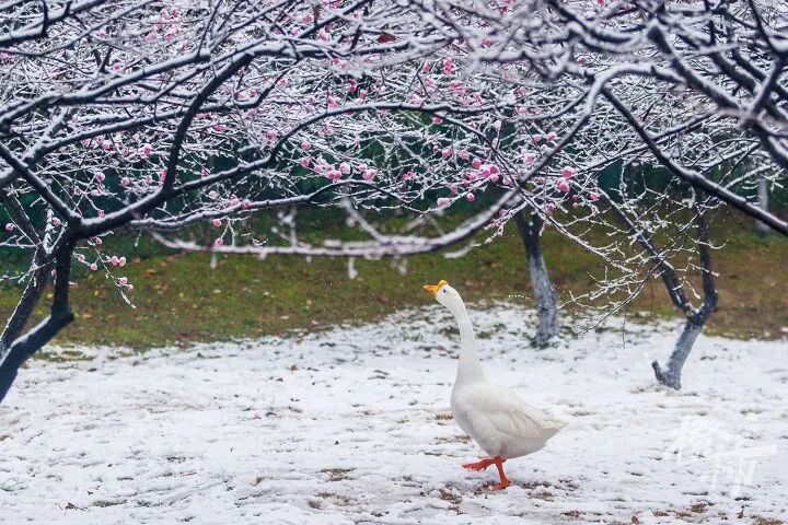 孤山下,一隻白鵝踏雪“賞梅”(資料圖)