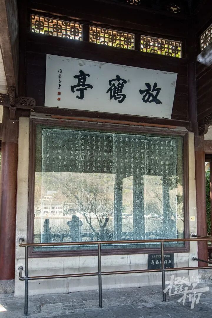 連各位皇帝都要專門來孤山附庸這番風雅。明代書法家董其昌書寫了南朝詩人鮑照所撰的《舞鶴賦》,後來康熙皇帝聽聞了“梅妻鶴子”的故事,於是就臨摹董其昌書寫了一篇《舞鶴賦》,這刻碑現就在放鶴亭中。