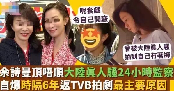 近年轉戰內地的佘詩曼在昨日接受由鄭裕玲(Do姐)主持的商臺節目《口水多過浪花》訪問。佘詩曼不但在訪問中透露為何決定回TVB拍劇,仲自爆頂唔順內地真人騷的24小時監察,表示不會再接拍內地真人騷!