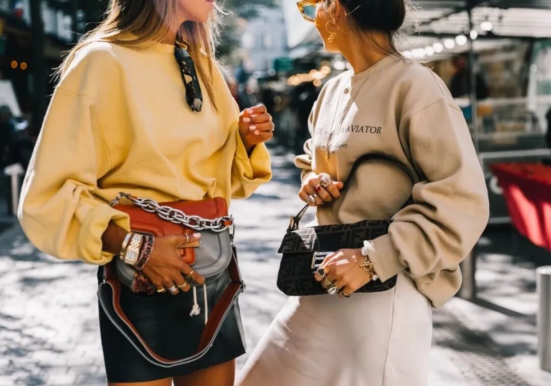 喜歡出挑的感覺可以選用色彩飽和度比較高的衛衣,比如黃色撞黑色,高調又活力,加個小絲巾細節滿分。