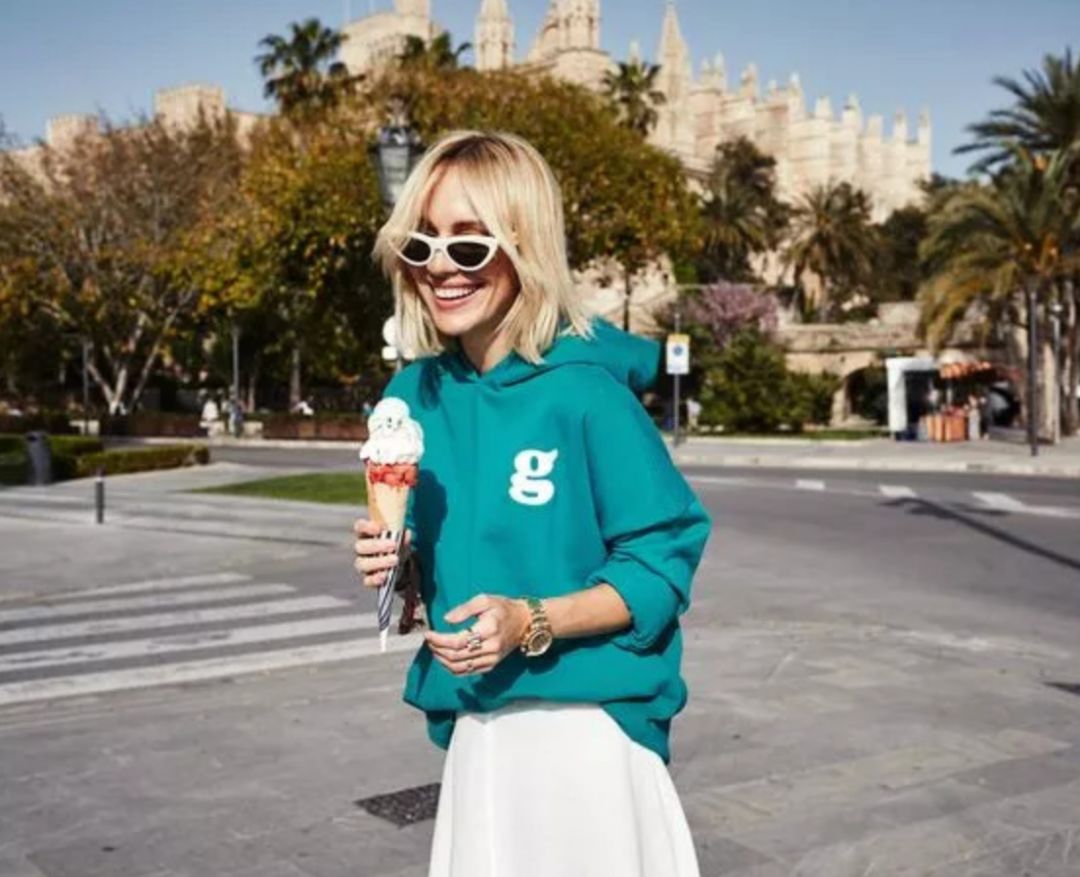 當然你也可以選擇將衛衣扎進裙子裡,同樣不失甜美與率性。