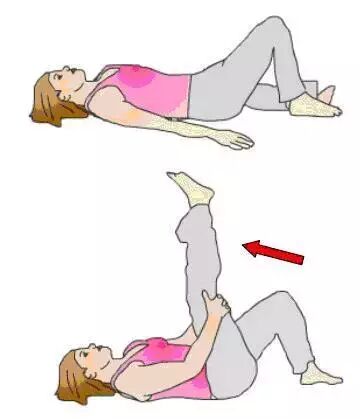 仰臥,一隻腿屈曲,足底貼地,另一隻腿伸直;將伸直的腿緩慢抬高,直到你感覺到大腿有輕微受牽拉的感覺。手可放在膝後以幫助固定和抬高運動的下肢。如果你的手夠不到膝,可以把毛巾繞在膝蓋或者大腿後,然後拉毛巾;保持姿勢5秒鐘;慢慢將抬高的腿放低至地面上,並放鬆;重複如上動作5次;換另外一隻腿,重複做如上動作。