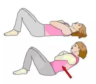 仰臥,屈膝,雙足底貼地,同肩寬;雙手在胸前交叉,保證你整個後背貼在地面上。將頭及肩部稍稍抬離地面,緩慢抬高直至肩完全離開地面。剛開始抬的高度有限也沒關係;保持姿勢幾秒鐘,隨著練習增多,你慢慢可以保持這個姿勢5至10秒鐘;慢慢將姿勢還原;重複5次。