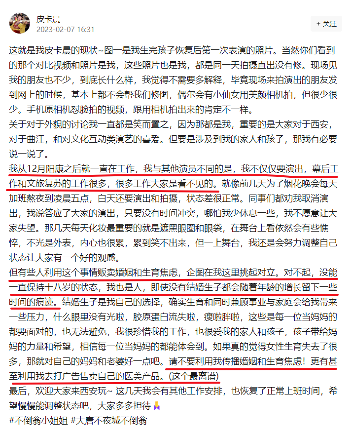 有人諷刺她的婚姻生活,販賣生育焦慮,更有甚者利用馮佳晨打起了廣告。