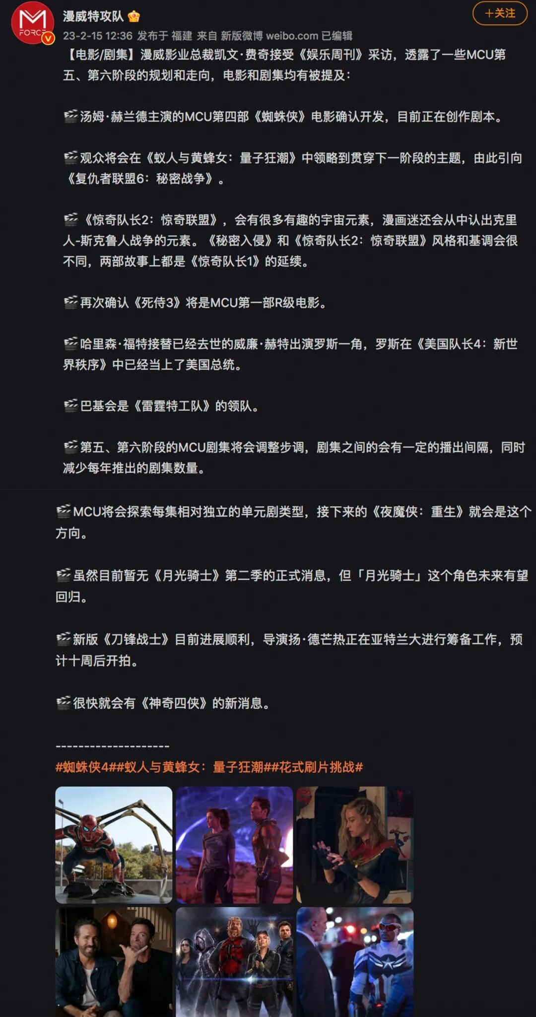 漫威曾在第四階段瘋狂提高產量,影劇並行,試圖以量的優勢在院線和流媒體平臺取勝,代價是作品質量和影響力肉眼可見地下滑。尤其第四階段的電影沒有一部被成功引進中國內地,使得中國的漫威受眾群體流失嚴重。
