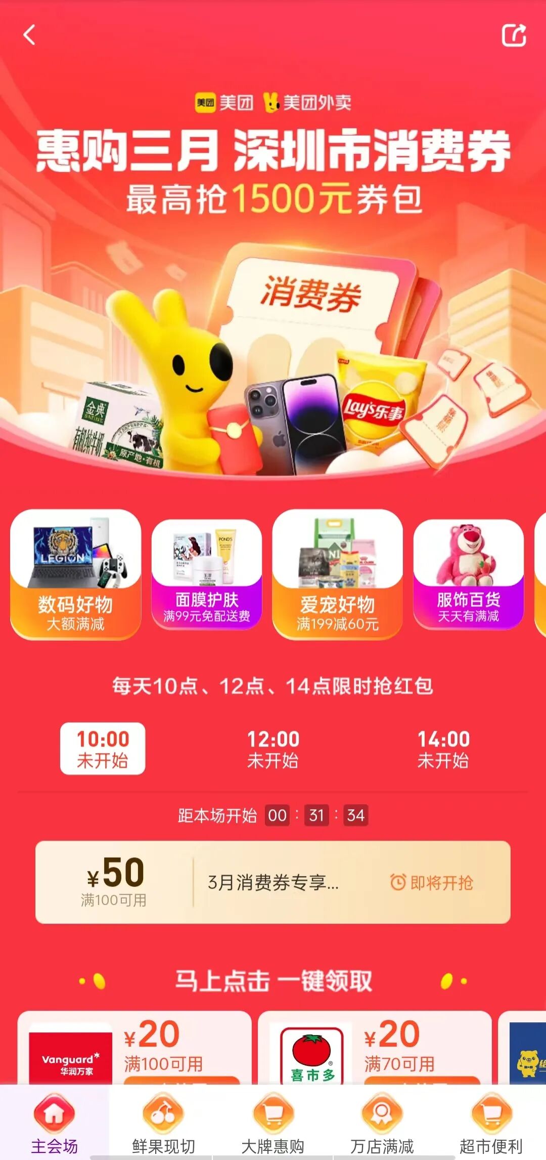 本次美團外賣“超市百貨消費券”覆蓋了超市便利、水果食材、酒飲、數碼家電、美妝個護、日用百貨、寵物、母嬰等多個商家業態的全品類商品。